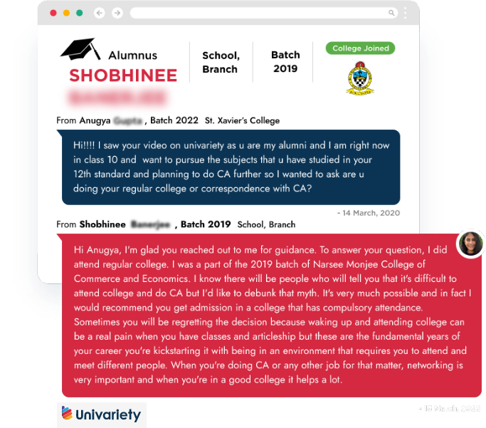 There’s no better way to seek uidance from someone who’s been there and done that. Students can reach out to their seniors from across batches and campuses to ask anything and everything about career clarity.